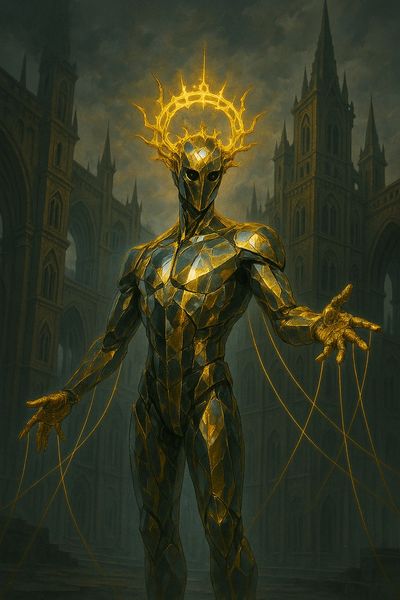 • Crown: Composed of golden Feylock threads, endlessly shifting and glowing faintly with cosmic light.