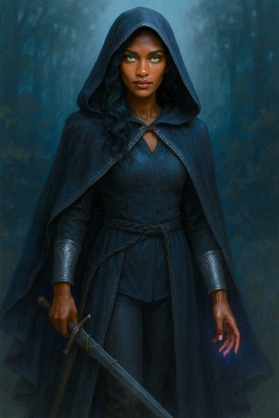 -Backstory: Descended from a forgotten people who once studied the balance of Feylock, Nyra embodies the balance between fate and free will. A seeker of knowledge along with Stig and Asha, she diverged from their trio when Asha turned to Chronovare. She has wandered many realms, stitching together broken timelines and helping those affected by distortions. Her presence is sometimes foretold in fractured realities "a woman who moves like memory, and speaks as if time listens."